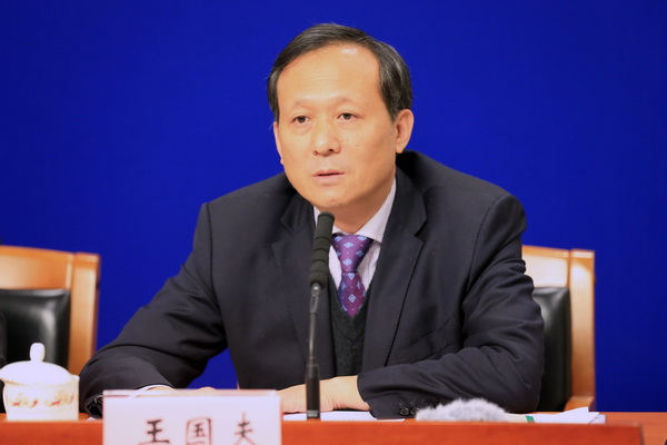 农业农村部于2018年11月8日(周四)上午10时,在农业农村部新闻办公室举行新闻发布会,介绍2018年全国新农民新技术创业创新博览会有关情况,并回答记者提问,图为南京市人民政府副秘书长王国夫回答记者提问。农业农村部网站 梁宝忠 摄