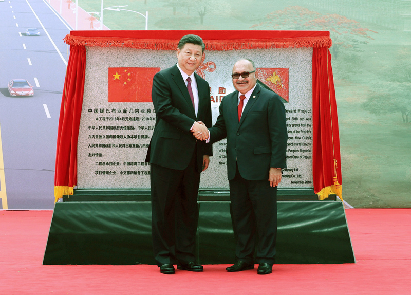 11月16日,国家主席习近平在莫尔兹比港和巴布亚新几内亚总理奥尼尔共同出席中国援建的独立大道移交启用仪式。新华社记者 费茂华 摄