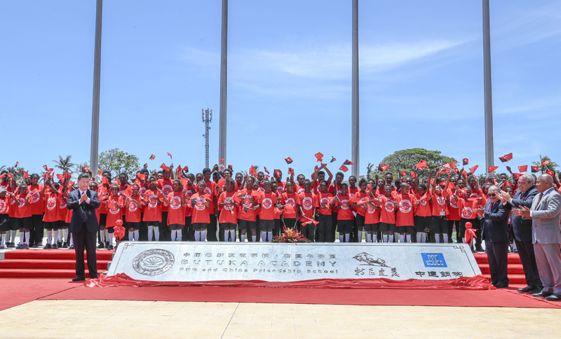 习近平和巴布亚新几内亚总理奥尼尔共同出席中国援建的布图卡学园启用仪式
