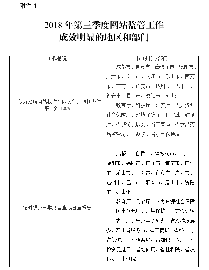 1.2018年第三季度网站监管工作成效明显的地区和部门