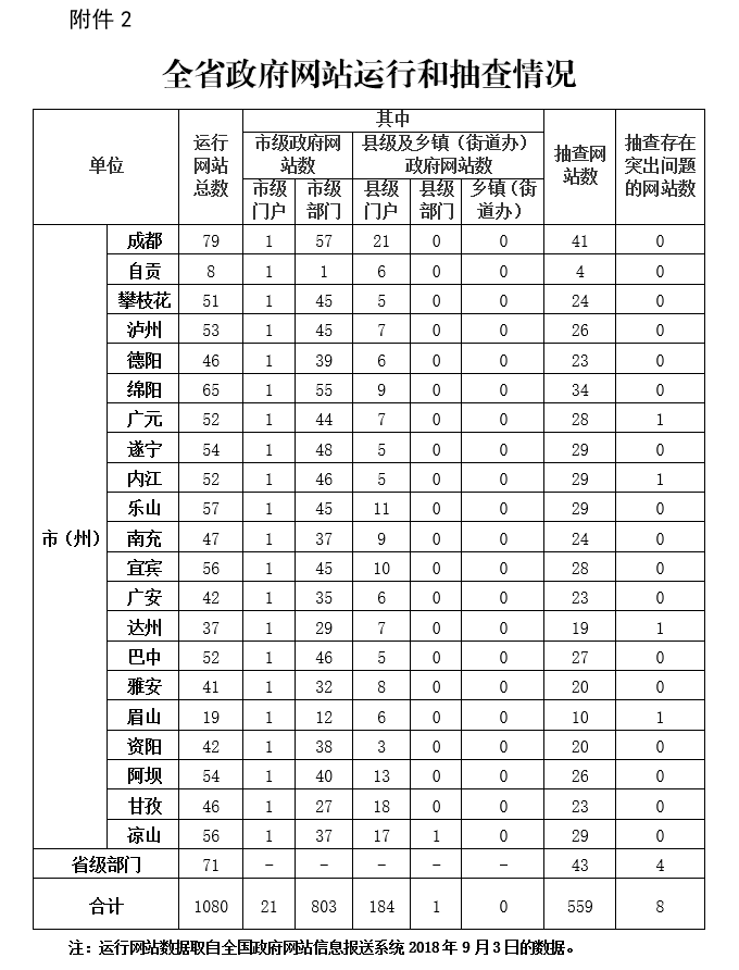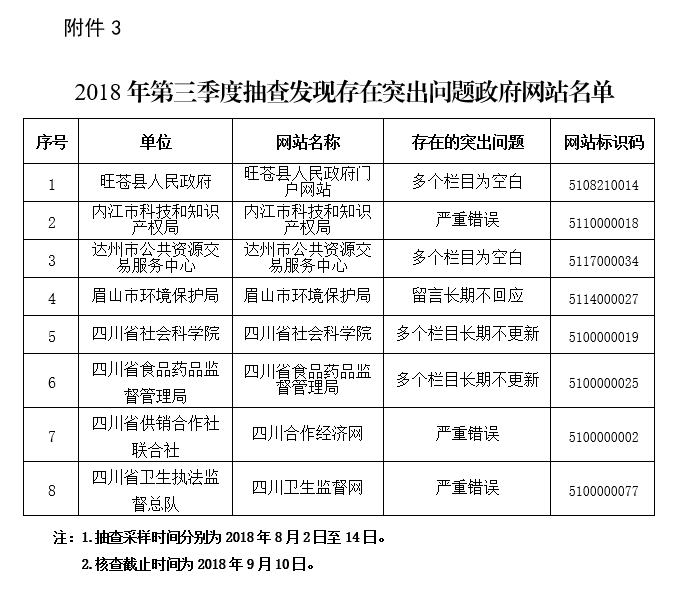 四川省人民政府办公厅关于2018年第三季度全省政府网站抽查情况的通报