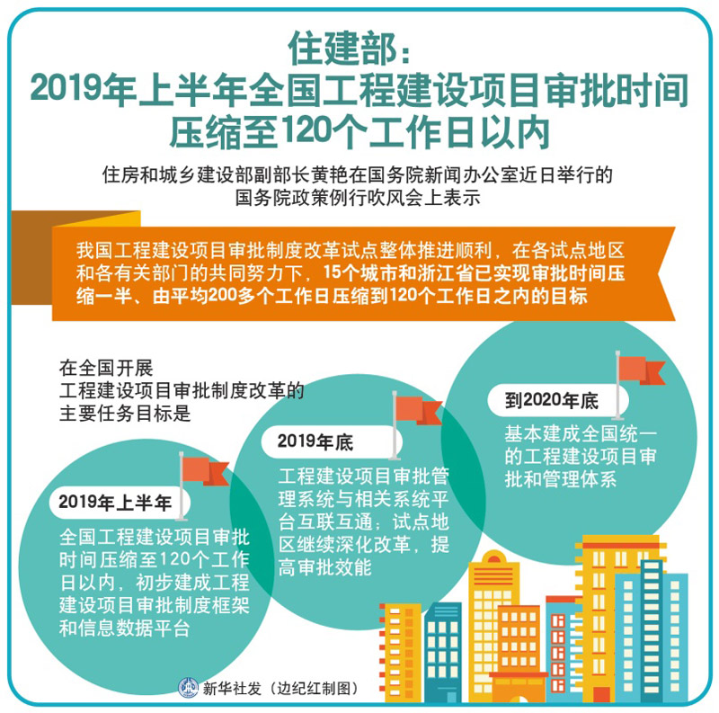 图表:住建部:2019年上半年全国工程建设项目审批时间压缩至120个工作日以内