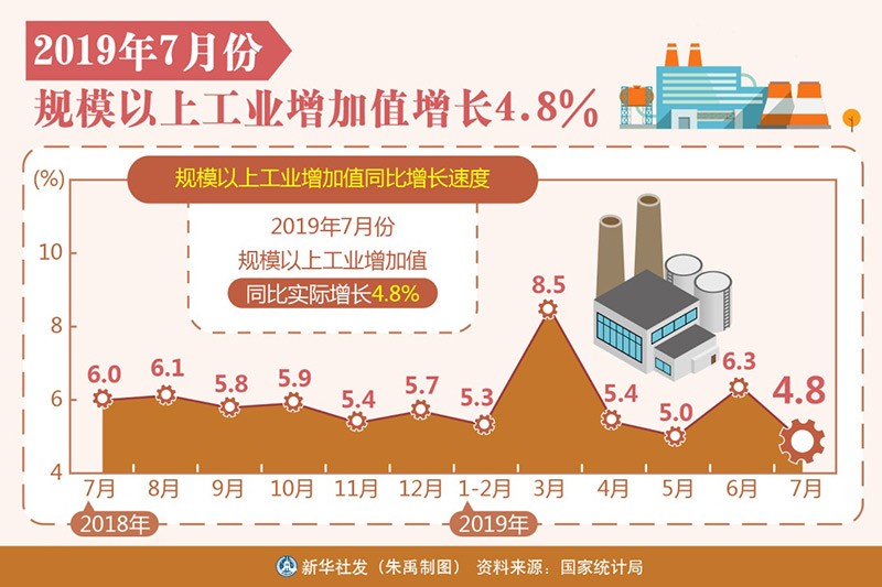 图表:2019年7月份规模以上工业增加值增长4.8%