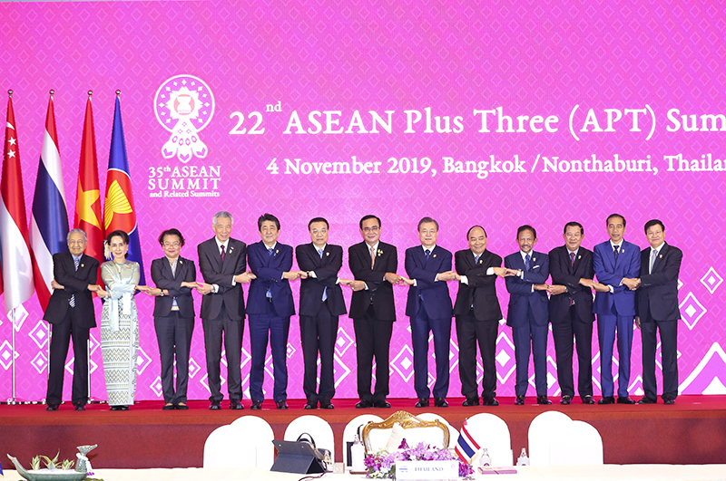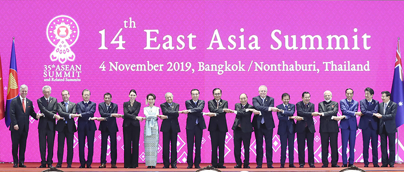 11月4日,泰国曼谷举行的区域全面经济伙伴关系协定(RCEP)领导人会议上,16国领导人合了两次影:一次是传统式,另一次则是东盟特色的“手拉手”。