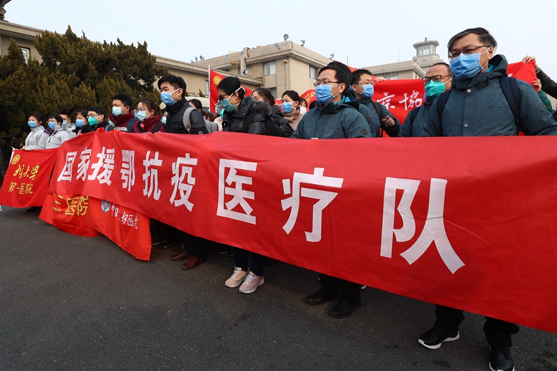 国家卫生健康委员会从北京医院、中国医学科学院北京协和医院、中日友好医院、北京大学第一医院、北京大学人民医院、北京大学第三医院6家在京委属委管医院,抽调重症医学科、呼吸科、医院感染科专家共121人,组建国家援鄂抗疫医疗队,于1月26日下午飞赴武汉。