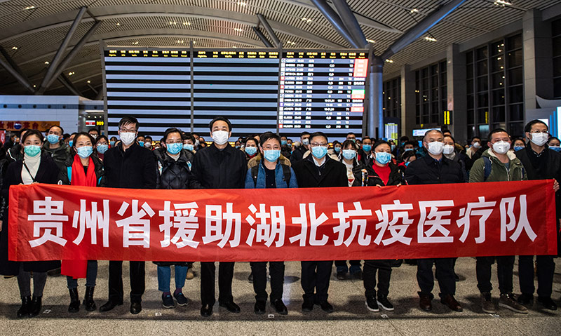 27日晚,由贵州省卫生健康委组建的贵州省首批援助湖北抗疫医疗队从贵阳龙洞堡机场出发,前往湖北省鄂州市支援。