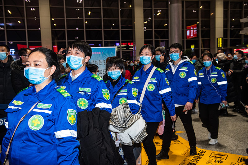 1月27日,贵州省首批援助湖北抗疫医疗队出发前往安检区域。