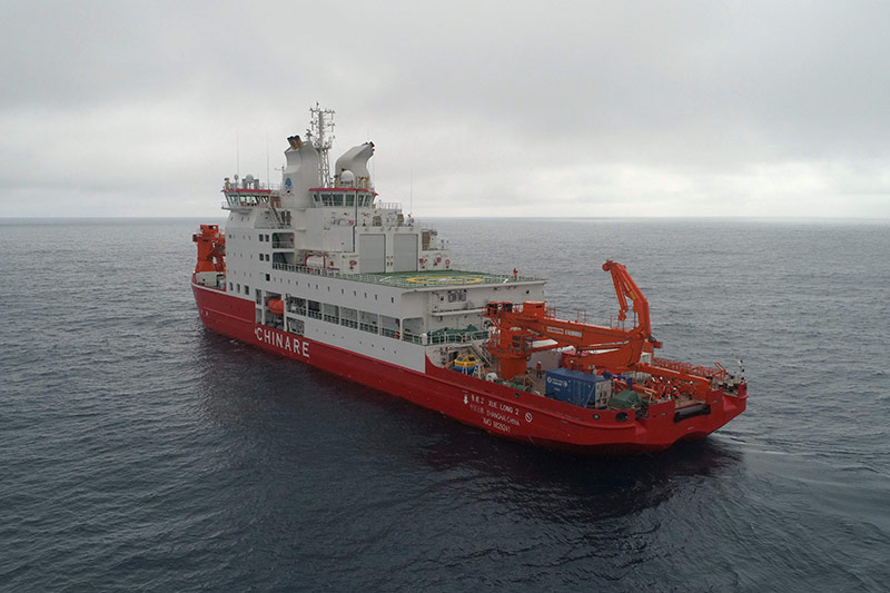 1月27日,“雪龙2”号在南大西洋的西风带进行科考作业(无人机照片)。