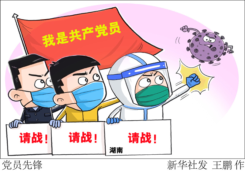 面对疫情,党员干部纷纷请战。新华社发 王鹏 作