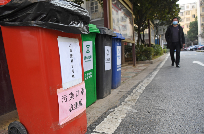 新型冠状病毒感染的肺炎疫情发生后,口罩使用量剧增。近日,江西省南昌市在各城区设置废弃口罩专用垃圾桶1万余个,号召市民正确处理废弃口罩。收集到的废弃口罩将由环卫部门进行专车运输、定点处理。