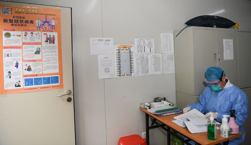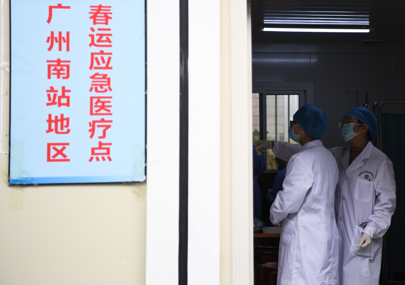 2月7日,从地方医院抽调的医护人员值守在广州南站西广场隔离观察点。