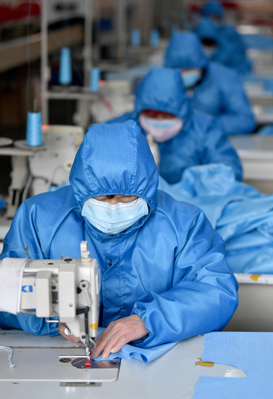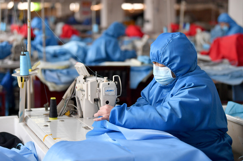 近日,为缓解疫情防控物资紧缺状况,陕西金翼服装有限责任公司在政府相关部门的帮助下积极调整产能,通过快速筹备,将职业装生产线转变为防疫工作需要的隔离服生产线,开足马力保障防疫物资供应。