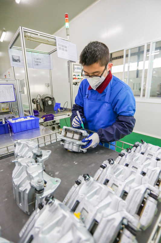 2月14日,在四川省遂宁市安居区伯特利汽车公司生产车间,工人忙着生产汽车制动器。