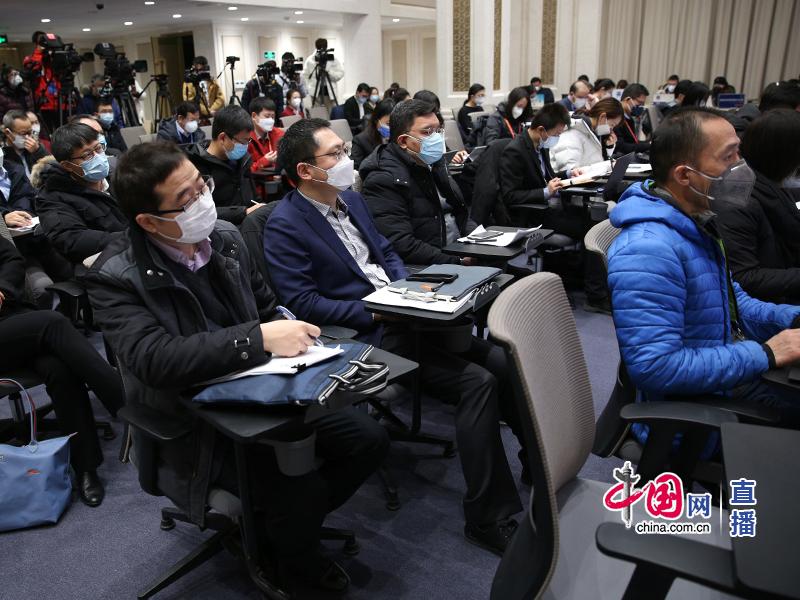 务院应对新型冠状病毒感染肺炎疫情联防联控机制于2020年2月15日(星期六)上午10时举行新闻发布会,请中国人民银行、中国银行保险监督管理委员会、中国证券监督管理委员会、国家外汇管理局负责人介绍克服困难,做好服务,金融系统全力支持抗击疫情和恢复生产有关情况,并答记者问。图为新闻发布会现场。中国网 郑亮 摄