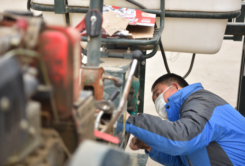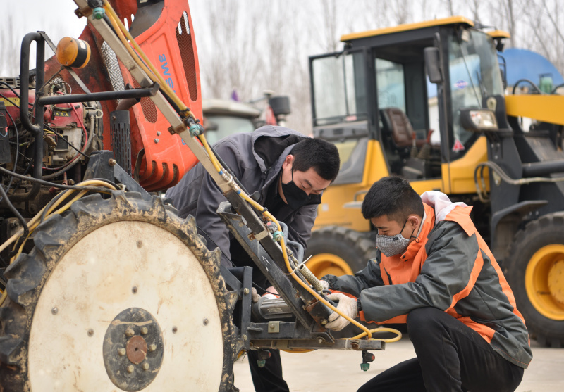 春耕备耕时节,河北省定州市信联农机专业合作社农民加紧对各类农业机械进行检修、调试,为即将到来的春耕生产做准备。