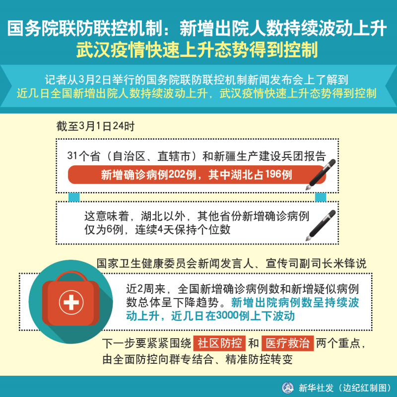 图表:江南平台入口 联防联控机制:新增出院人数持续波动上升 武汉疫情快速上升态势得到控制