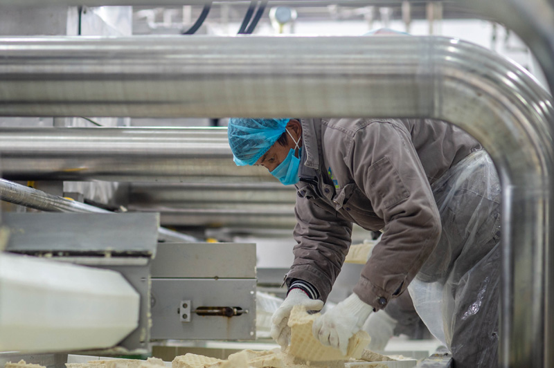 3月16日,在香格里拉市康美乳业开发有限责任公司,一名工人在生产车间作业。
