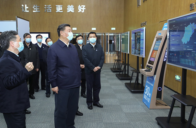 31日下午,习近平总书记在杭州城市大脑运营指挥中心,观看“数字杭州”建设情况,了解杭州运用健康码、云服务等手段推进疫情防控和复工复产的做法。习近平说,城市大脑是建设“数字杭州”的重要举措。通过大数据、云计算、人工智能等手段推进城市治理现代化,大城市也可以变得更“聪明”。从信息化到智能化再到智慧化,是建设智慧城市的必由之路,前景广阔。(文字记者:张晓松、杨维汉、朱基钗 摄影记者:鞠鹏)