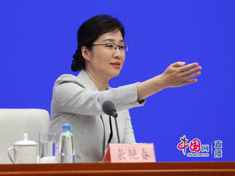 图为国新办新闻局副局长袭艳春邀请记者提问。中国网 董宁 摄