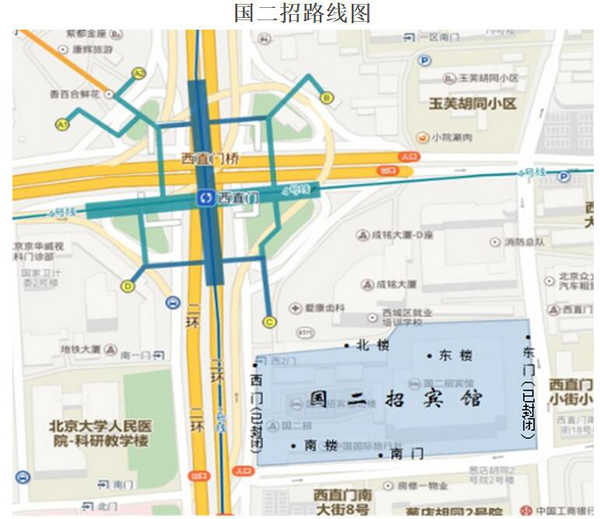 北京国二招宾馆路线:乘坐北京地铁2号线/4号线/13号线至西直门站C出口,直行100米见路口左转,步行50米即可到达。如自驾前往请于4月22日20时前,通过下方联系电话报备车号。人员和车辆从北京国二招宾馆南门进入。