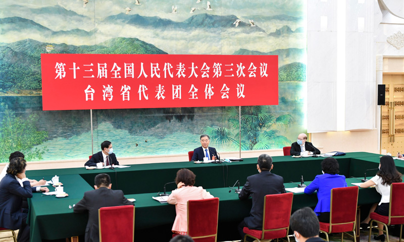 5月24日,中共中央政治局常委、全国政协主席汪洋参加十三届全国人大三次会议台湾代表团的审议。新华社记者 殷博古 摄