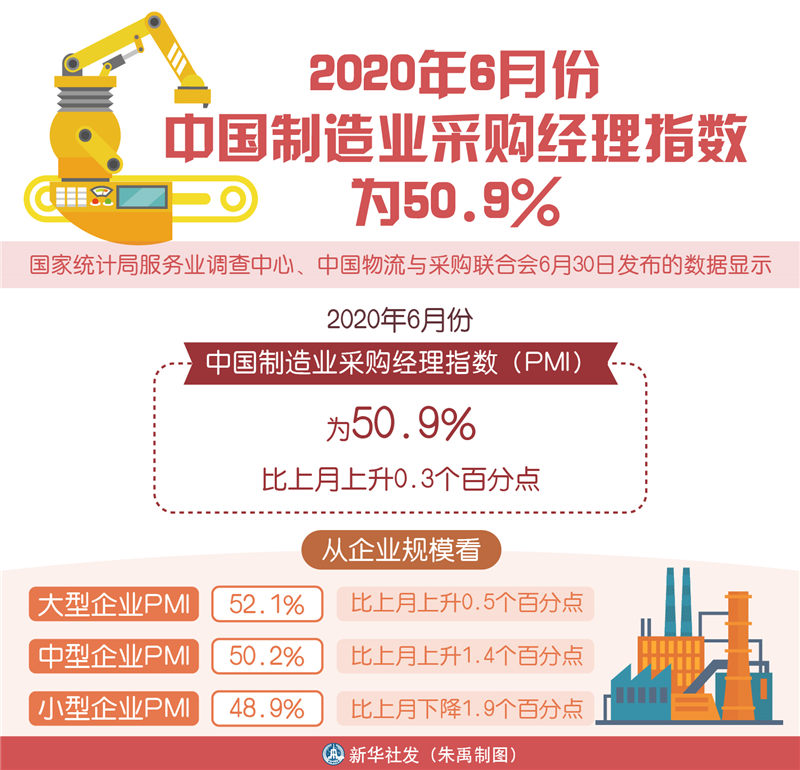 图表:2020年6月份中国制造业采购经理指数为50.9%