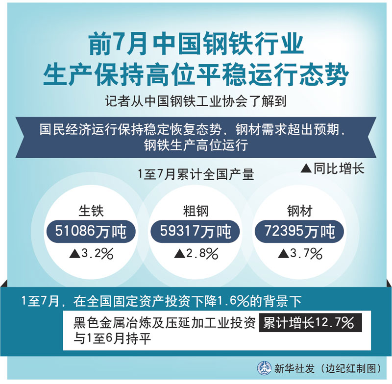 图表:前7月中国钢铁行业生产保持高位平稳运行态势