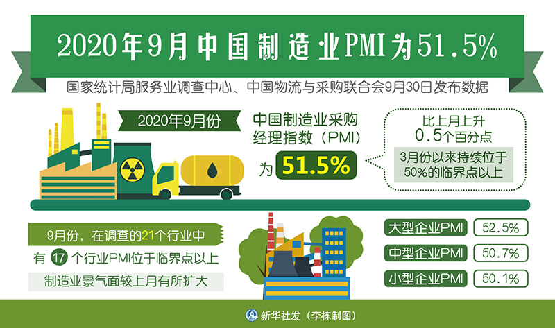 图表:2020年9月中国制造业PMI为51.5%