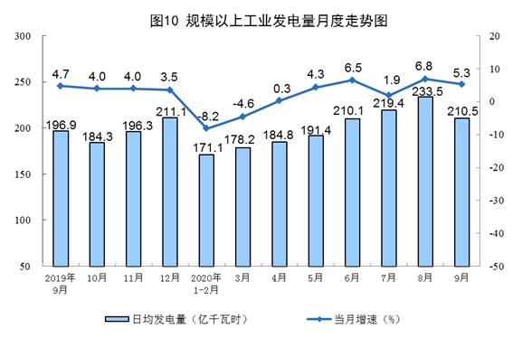 9月份,规模以上工业原煤生产降幅略有扩大,原油生产平稳,天然气生产加快,电力生产有所放缓。