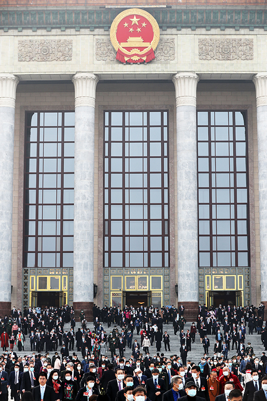 3月10日,中国人民政治协商会议第十三届全国委员会第四次会议在北京人民大会堂举行闭幕会。这是闭幕会后,委员们走出人民大会堂。