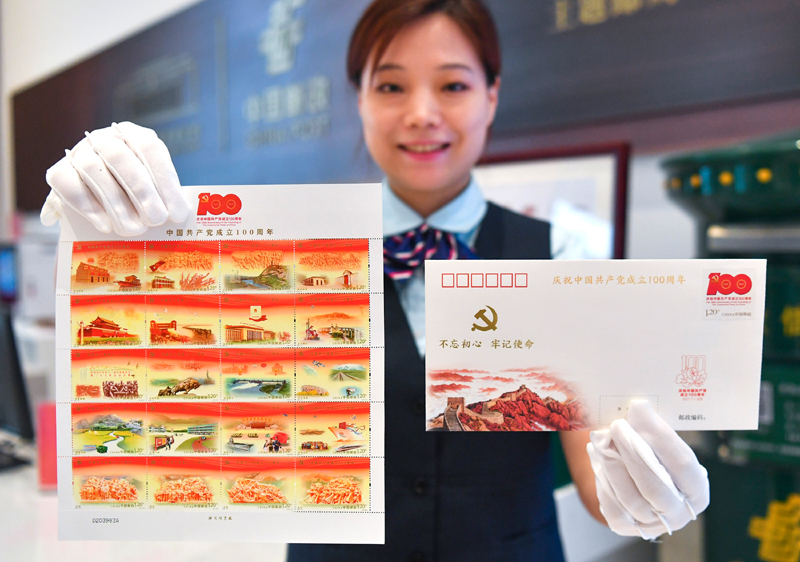 当日,《中国共产党成立100周年》纪念邮票和纪念封在北京发布。中国邮政将于7月1日发行《中国共产党成立100周年》纪念邮票1套20枚,纪念封1套1枚。
