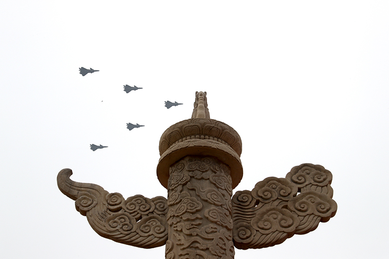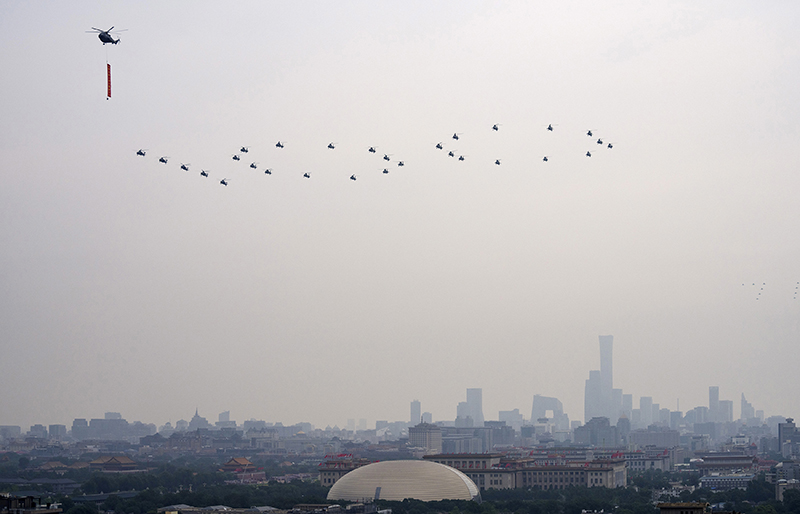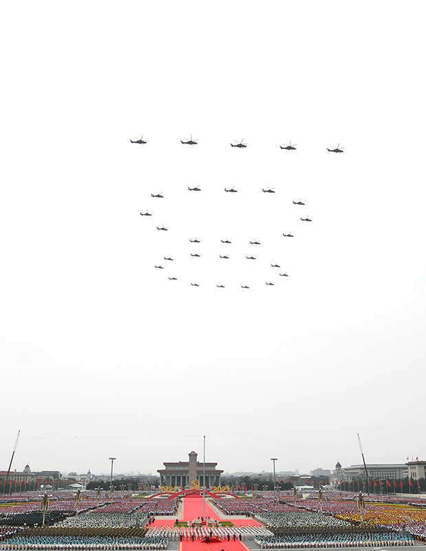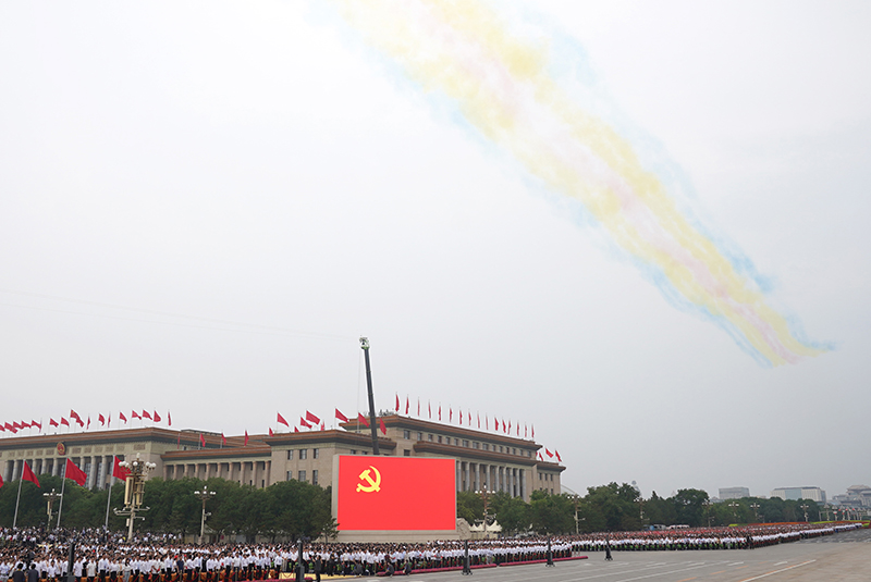 7月1日上午,庆祝中国共产党成立100周年大会在北京天安门广场隆重举行。这是大会开始前的飞行庆祝表演。