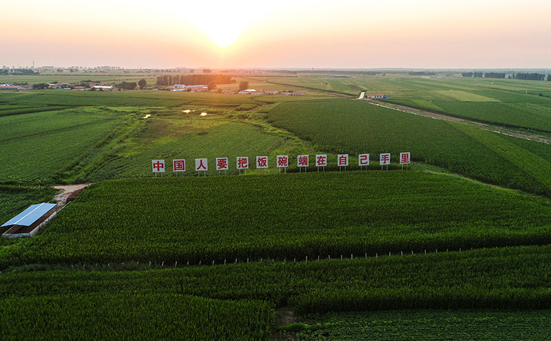 2020年7月22日下午,松辽平原腹地,吉林省四平市梨树县国家百万亩绿色食品原料(玉米)标准化生产基地核心示范区,习近平总书记凭栏远眺,玉米地一望无边、绿浪滚滚。