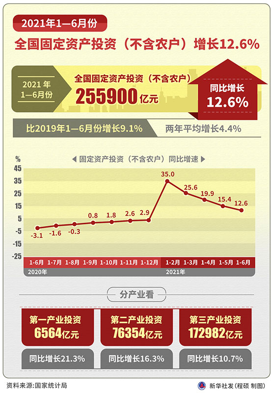 图表:2021年1-6月份全国固定资产投资(不含农户)增长12.6%