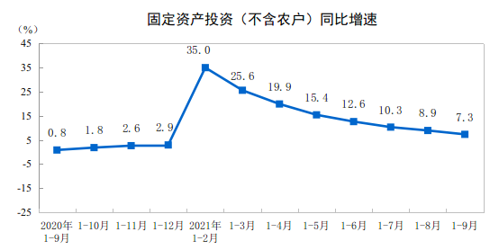 2021年1—9月份全国固定资产投资(不含农户)增长7.3%
