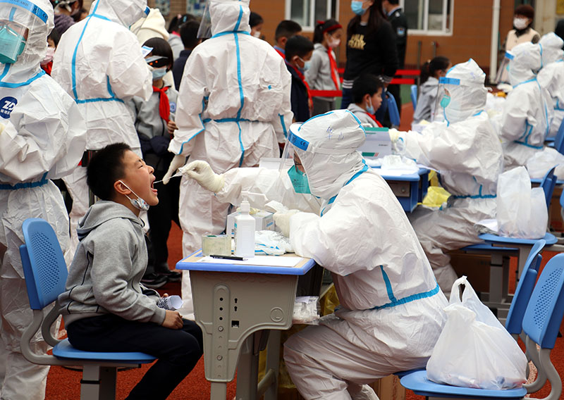 3月11日,复旦大学第二附属学校师生接受核酸采样。