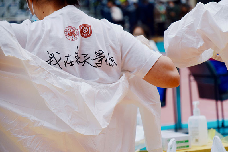 3月11日,复旦大学邯郸校区学生接受核酸采样。