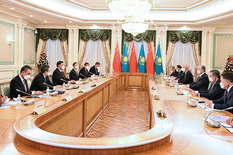 习近平强调,中方支持中亚国家维护政治安全和社会稳定,支持中亚国家加强一体化合作,愿同哈方保持密切沟通,妥善应对各类新问题新挑战,反对外部势力干涉中亚国家事务,共同维护本地区长治久安。双方要加强在上海合作组织、亚信、“中国+中亚五国”等多边机制框架内合作,共同支持办好上海合作组织撒马尔罕峰会,为本组织下阶段发展注入新动力。双方要加强国际协作,践行真正的多边主义,为构建更加公正合理的全球治理体系作出“中哈贡献”。