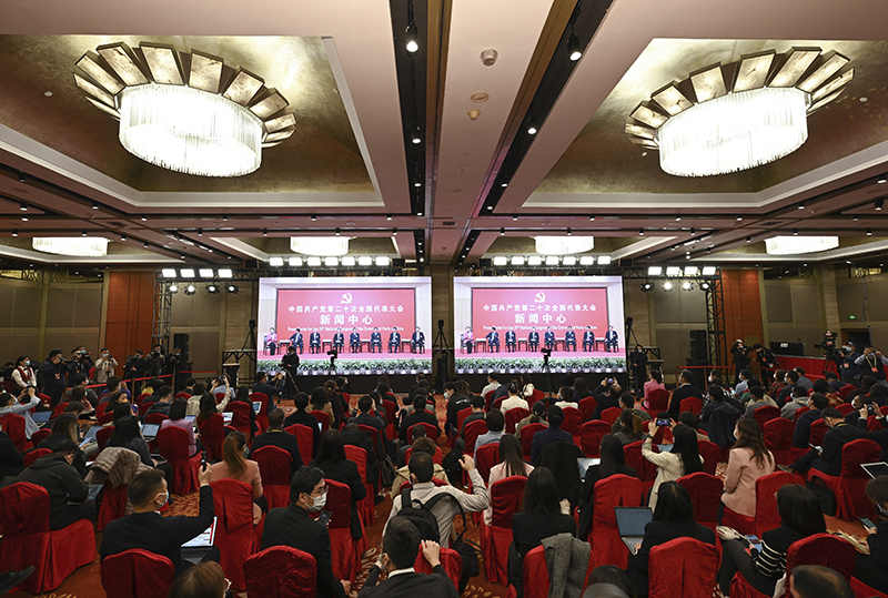 10月18日,中国共产党第二十次全国代表大会新闻中心举行集体采访,请北京、天津、河北、山西、内蒙古、辽宁、吉林代表团新闻发言人出席,介绍代表团学习讨论二十大报告情况,并回答记者提问。