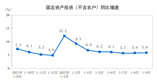 2022年1—9月份全国固定资产投资(不含农户)增长5.9%