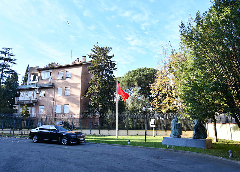 11月30日,中国驻意大利大使馆下半旗志哀,悼念江泽民同志逝世。