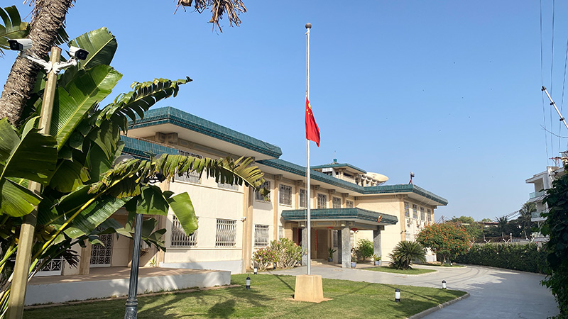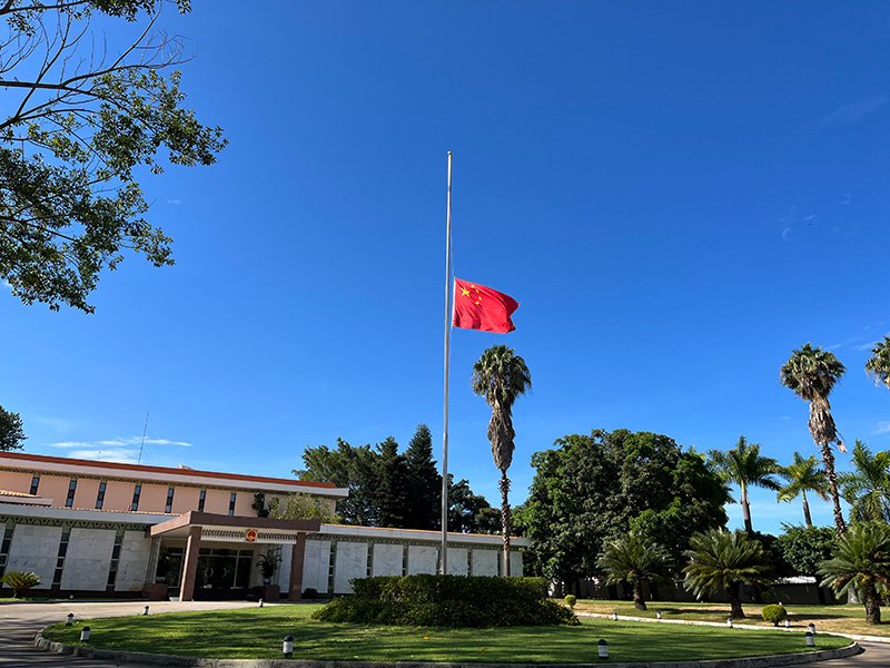 11月30日,中国驻南非大使馆下半旗志哀,悼念江泽民同志逝世。