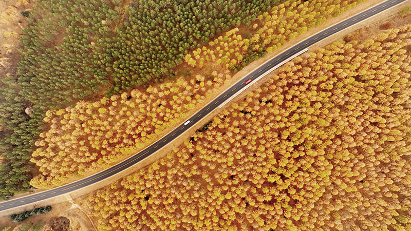 这是2022年10月2日拍摄的河北塞罕坝国家级自然保护区秋景(无人机照片)。新华社发(王龙 摄)