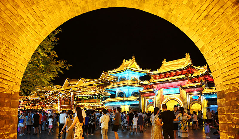 游人在陕西西安周至水街烟火巷子内游玩(2022年8月6日摄)。