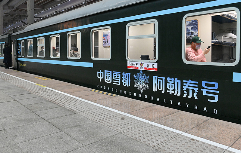 12月28日,新疆开行“中国雪都·阿勒泰号”冰雪游旅客列车。据了解,该列车从乌鲁木齐出发,终点至阿勒泰地区富蕴县,途中仅经停北屯市、阿勒泰两站,夕发朝至,每日开行,采取全列卧铺配置。