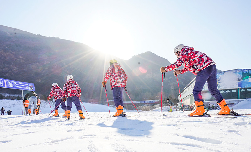 2022年12月31日,滑雪爱好者在河北省遵化市一家滑雪场练习滑雪。