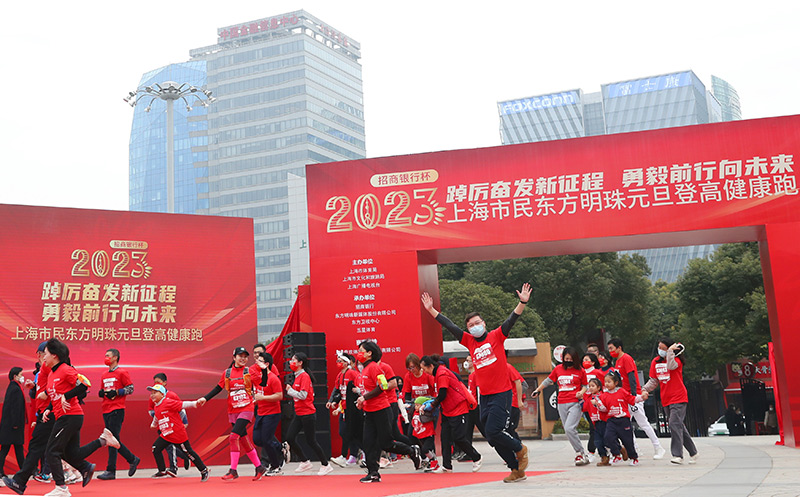 1月1日,在上海市,参加东方明珠元旦登高健康跑的选手从起跑点出发。