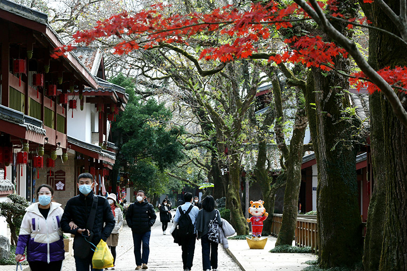 1月1日,游客在福建省武夷山国家公园内宋街景点游览。