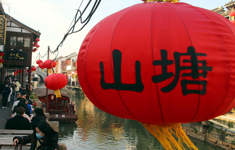 12月31日,游客在江苏省苏州市山塘古街游览。