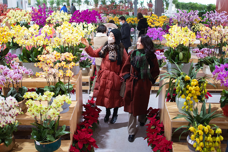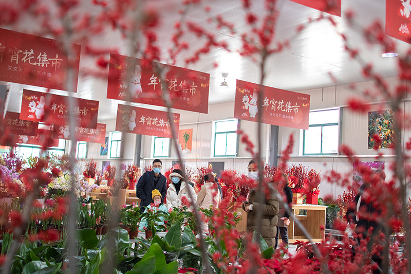 1月1日,消费者在武汉市汉口北鲜花市场购买鲜花。